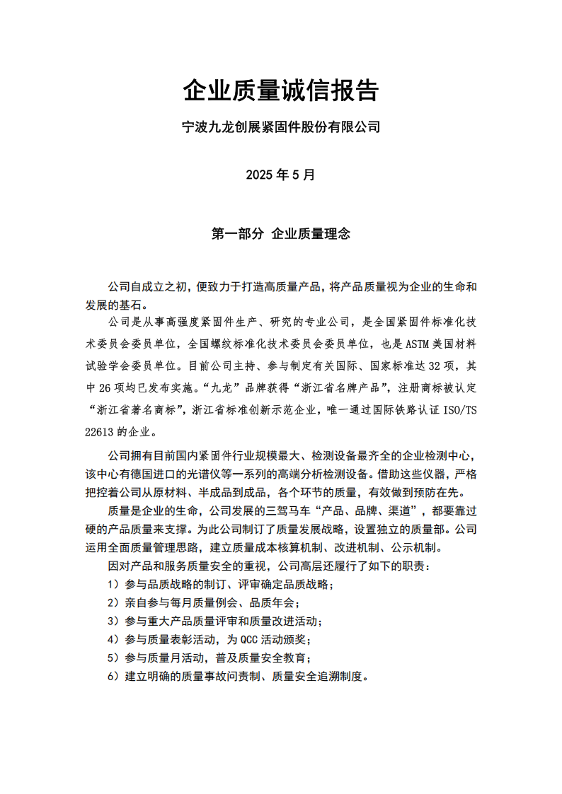 質(zhì)量誠(chéng)信報(bào)告